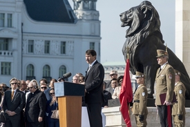 Az államfő az Országház előtti Kossuth téren esküt tett katonákhoz is szólva úgy fogalmazott, „mi ma is Szent István népe vagyunk, egy sokszínű nemzet, amely oly sokszor a maga erejéből forgatta a történelem kerekét”.