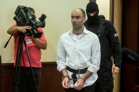 Kóbor Jenő bíró a tárgyaláson tanúvallomásokat is ismertetett, amelyek szinte mindegyikékhez megjegyzéseket fűzött a vádlott, akit két, fekete csuklyát viselő fegyőr kísért a tárgyalóterembe.