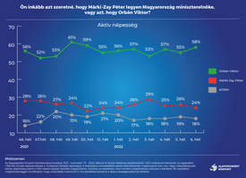 Hangsúlyozták, Márki-Zay Péter támogatottsága tavaly év végéhez közeledve érte el az eddigi mélypontját: akkor 22 százalék mondta azt, hogy őt szeretné kormányfőnek, amin most csak 2 százalékot tudott javítani.