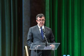 Palkovics László technológiai és ipari miniszter beszédet mond az államalapítás tiszteletére rendezett ünnepségen a Pesti Vigadó dísztermében 2022. augusztus 22-én