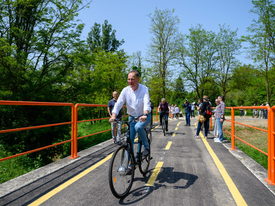 Navracsics Tibor kiemelte: Ajka több különböző település összenövésével jött létre, ezért az érintett városrészek számára a mindennapi közlekedés szempontjából is fontos az új kerékpárút.