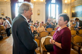 Réthelyi Miklós korábbi nemzetierőforrás-miniszter, zsűrielnök és Müller Cecília országos tisztifőorvos a Steller Mária védőnői díjak átadásán a Magyar Tudományos Akadémián 2022. május 12-én