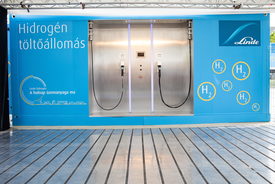 Magyarország elsõ mobil hidrogén-töltõállomása a Linde Gáz Magyarország Zrt. budapesti telephelyén az avatás napján, 2021. április 29-én.