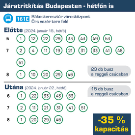 - reggel 5–6 óra között 15 perc volt a legnagyobb köz két 161E busz között, ez most 24 perc;