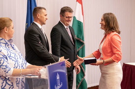 Borvendég Zsuzsanna, a Mi Hazánk Mozgalom képviselője (j) átveszi megbízólevelét
