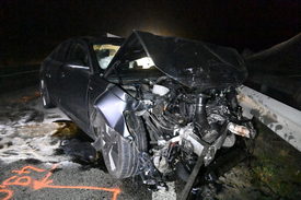Ütközésben összetört személygépkocsi az M4-es autóúton az 53-as kilométernél 2023. október 4-én este