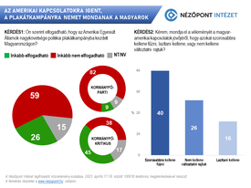 A magyarok 40 százaléka szorosabbra fűzné, 26 százaléka szinten tartaná a magyar-amerikai kapcsolatokat, ez azonban nem jelenti a Biden-adminisztrációval való egyetértést; ezt támasztja alá, hogy a megkérdezettek többsége (59 százalék) nem tartja elfogadhatónak az Egyesült Államok nagykövetségének plakátkampányát – derült ki a Nézőpont Intézet legújabb közvélemény-kutatásából.