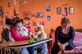 – Ezt naponta többször is meg kell tenni, mert enélkül nem kapna levegőt. A cső sokszor negyedórán át is a torkában van. Sajnos akármennyire fáj neki, muszáj megcsinálnom. Ilyenkor én is vele együtt sírok – mondja Anikó, akinek nem sok kell, hogy előttünk is sírva fakadjon. A kislányt az epilepsziás rohamok és a fulladások miatt csak percekre lehet magára hagyni, és éjjel is figyelni kell rá. Mivel nem képes megfordulni, forgatni kell, ráadásul a sérült tüdő miatt sem tud sokáig csak az egyik oldalán feküdni. Ha Jázminka megmozdul, Anikó azonnal felébred, mintha mindig még csak egy újszülötthöz kelne fel. Egyhuzamban maximum két órát alhat. Kilenc éve csak így alszik, részletekben.