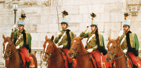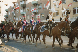 Stockholmban, a II. Tattoo Tyl Hast katonai szemlén 1986-ban. Elöl angol huszárok, utánuk lengyel ulánusok, majd a magyar huszárok képviseletében a Zrínyi Miklós Haditorna Klub tagjai