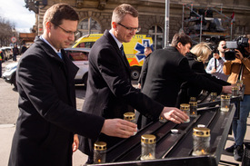 Az ünnepség végén a résztvevők a Terror Háza Múzeum épülete előtt gyertyákat, mécseseket gyújtottak.