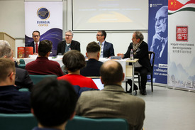 Az Eurázsia Központ, a Milton Friedman Egyetem, a Magyar-Kínai Fiatalok Baráti Egyesülete és a PPKE közös rendezvényén Salát Gergely, a PPKE BTK Kína Tanszékének vezetője, Horváth Levente, az Eurázsia Központ igazgatója és Horváth Marcell, a Magyar Nemzeti Bank nemzetközi kapcsolatokért felelős ügyvezető igazgatója beszélgettek, Szatmári Péter, a Milton Friedman Egyetem rektorhelyettesének moderálása mellett.