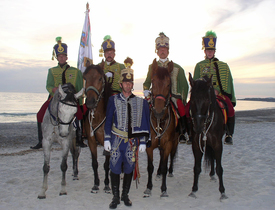 Balról jobbra: Vajai László, a második huszár nevét nem tudom, a zászló mögött László Tibor, Kaszás Tamás, Juhász Anita, Varju Tibor és Abonyi Gábor.