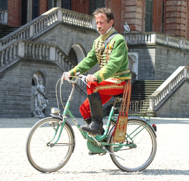 Egy egész busznyi csapattal utaztunk 2004-ben Rómába és a Vatikánba, a Károly Király Imaligát segítve, támogatva. Részt vettünk a Szent Péter téren celebrált szentmisén, ahol is az utolsó apostoli királyt, IV. Károlyt avatták boldoggá. Gábor itt sem lehetett ló nélkül. Külön szervezésben, hetedmagával vonult be lóháton, egyenruhában, fegyverzettel (karddal) a vatikáni szertartásba. Felsorakoztak az azóta szentté avatott II. János Pál pápa tiszteletére és a boldoggá avatás ünneplésére. Nagyon büszke volt arra, hogy több mint kétszáz év után a magyar huszárok törték meg azt a nagyon szigorú szabályt – igaz, csak erre az alkalomra -, hogy fegyverrel senki nem léphet a Szent Péter térre, a Szentatya közelébe. Mivel erről nincsen fényképem, mellékelem ezt a kerékpáros képet. Egy Rómában bicikliző magyar huszár legalább akkora kuriózum, mint a pápa előtt felsorakozó magyar lovas huszárok – na persze egészen más az üzenete. Más súllyal vetül a magyar kultúra és a magyar katonai hagyományőrzés történetébe.