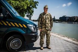 Farkas Péter szakaszvezető, a Magyar Honvédség 1. Honvéd Tûzszerész és Hadihajós Ezred logisztikájának gépkocsivezetője a Margit-szigeten 2019. július 2-án.
