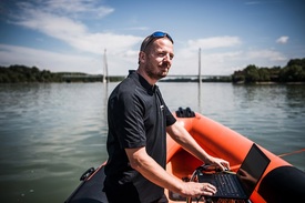 Bajdik János, a Norbit Hungary Kft. sales managere Budapesten, a Megyeri híd közelében, a Duna fővárostól északra esõ szakaszán 2019. július 22-én.