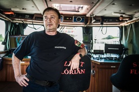Sági János tűzoltó százados, a Szent Flórián tűzoltóhajó kapitánya Budapesten, a hajó fedélzetén 2019. június 14-én.