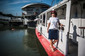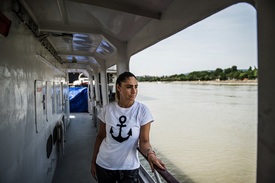 Jánvári Attiláné, Gizi, a Monarchia rendezvényhajó matróza Budapesten 2019. augusztus 5-én.