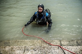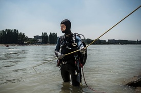 A búvárgyakornok két éve tanulja a szakmát, napi szinten merül, ilyen körülmények között ez volt az első éles bevetése. Drótkötelet kellett átfűznie a Hableány sétahajó alatt. – Nagyon rossz volt a hajó aurája – mondja, – nem szerettem, amikor hozzá kellett érni. Persze, az ember leküzdi ezt az ellenérzést, mert ott lent a feladatra kell koncentrálni.