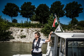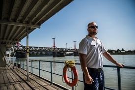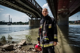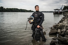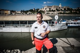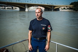 – Mint egy zászló lebegtem a tűzoltóhajó létráján – mondja a búvár, aki május 31-én kapcsolódott be a mentésbe, és a hajó kiemeléséig a helyszínen volt. Másodikként merült a nagy sodrású és zavaros Dunában. Az egyik merülésnél elakadt a tűzoltóhajó létrájában és az erős sodrás miatt másik búvár sem tudott segítségére sietni. Végül úgy szabadult meg a lebegő pozícióból, hogy elvágta a vezetőkötelet, és felemelkedett a víz felszínére.