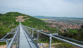 Izgatottan tesszük meg az első lépéseket a hegyi átjárón. Az első pillanattól fogva maximális biztonságban érezzük magunkat. Lenyűgöző a látvány Májuskút-völgy fölötti 80 méteres magasságból. Előretekintve a Szár-hegyi Magyar Kálvária együttes sziluettjét pillantjuk meg, amely az 1920 után elszakított országrészek és városok előtt tisztelegve, Jézus szenvedéstörténetének analógiájára idézi meg Trianon nemzeti fájdalmát. Mögöttünk a tatárjárás után épült Árpád-kori sátoraljaújhelyi vár modern kori kilátósétánya magasodik. A hídról a Májuskút-patak völgyében sorakozó nyaralóházak mellett a Hegyaljára épült teljes várost szemügyre vehetjük. A borsi Rákóczi-kastély előterében aranyló repcemezők már felvidéki területek…