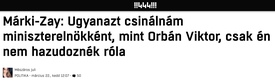 – Ugyanazt csinálnám miniszterelnökként, mint Orbán Viktor, csak én nem hazudoznék róla.