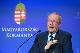 Bakondi György, a miniszterelnök belbiztonsági fõtanácsadója az illegális bevándorlásról a Miniszterelnöki Kabinetiroda sajtótermében tartott sajtótájékoztatón 2024. március 20-án.