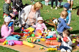 Gyerekek játszanak a Nagycsaládosok Országos Egyesülete (NOE) Babaköszöntő című rendezvényén a péteri horgásztónál 2021. szepetember 19-én