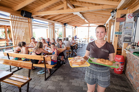 – Odafigyelünk az előírásokra, minden reggel azzal kezdjük a műszakot, hogy ellenőrizzük a szabályok betartását. Főállásban önkormányzati köztisztviselő vagyok, vendéglátós vállalkozóként ez az első nyaram, és őszintén bevallom, hogy a munka sokkal nehezebb, mint képzeltem. Folyamatos a pörgés, csúcsidőben egy pillanatra sem lehet megállni. A nyár folyamán már két dolgozó is elment, nem bírták a terhelést, jelenleg is küzdünk a szakemberhiánnyal.