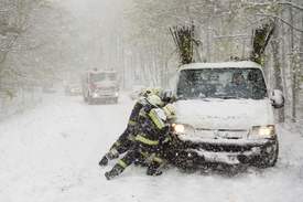 A hóesésben elakadó és árokba csúszó járműveket mentettek a tűzoltók, a balesetekben heten sérültek meg.