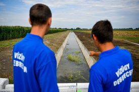 A Tiszántúli Vízügyi Igazgatóság munkatársai a Derecskei-fõcsatorna korszerûsített szakaszán Derecske térségében 2020. július 29-én. MTI/Czeglédi Zsolt