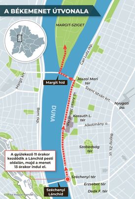 Innen délután egy órakor, a híd lábától indul a menet az Antall József rakparton át a Margit hídig, majd a hídról a margitszigeti nagyrétre, a Víztorony elé, ahová körülbelül délután háromra ér be mindenki. Itt várja a vonulókat a felállított színpad, ahol a tervek szerint Orbán Viktor miniszterelnök is beszédet mond.
