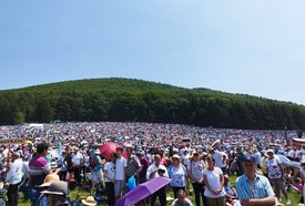 A szerzetes a szűzmáriás feltétlen bizalom és a lehajoló alázat jelentőségét hangsúlyozta, és arra kérte a sok százezer hívőt, hogy imádkozzanak a békéért és Erdély nagy püspöke, a román kommunista diktatúra által üldözött Márton Áron boldoggá avatásáért.