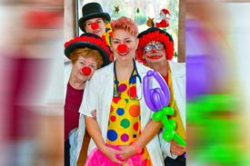 Csicsi, Edi, Márti és Pepi bohóc. Fotó: Vidovics Ferenc/Demokrata