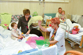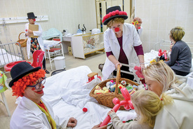 – Ez mindenkinek nagy boldogság – jelenti ki dr. Tóth Edit osztályvezető főorvos, aki az éjszakai ügyelet hosszú órái után is mosolygósan fogadja a nem mindennapi vendégeket. – Tudományos tények igazolják, hogy a nevetés gyógyít, a boldogsághormonok pedig fokozzák az immunrendszer működését, ezáltal felgyorsítják a gyógyulási folyamatot. Ráadásul a bohócdoktorok látogatása kizökkent bennünket a hétköznapi rutinból, jókedvük pedig nemcsak a gyerekekre, hanem az egészségügyi dolgozókra is átragad. Az osztályon télvíz idején főként hurutos betegeket és műtét után lábadozókat kezelünk, de vannak nálunk asztmások és olyan gyerekek is, akik – különböző fájdalmak és panaszok miatt – kivizsgálásra érkeznek hozzánk.