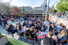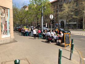 Szabad asztalt már délelőtt sem mindenhol lehetett találni Budapest belvárosában: sokan az áprilisi napsütésben szerették volna reggelijüket elfogyasztani, vidám fiatalok söröztek, családosok fagylaltoztak a teraszokon. Igazán azonban délután pezsdült fel az élet.