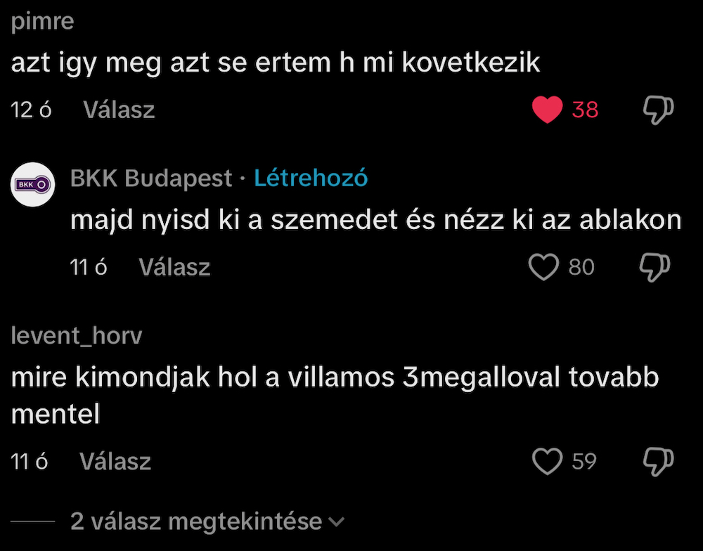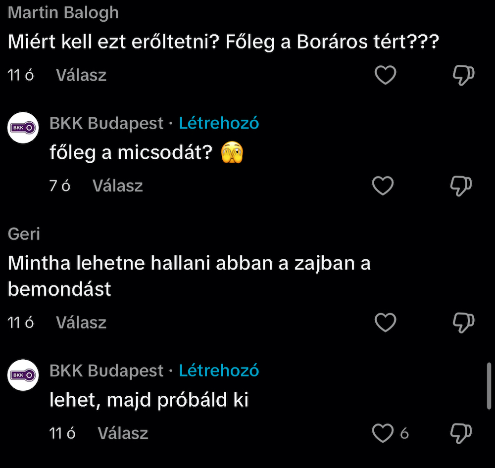A BKK végül kiadott egy közleményt, amelyben megpróbáltak elnézést kérni – ez is felemásra sikeredett, még csak utalás sincs benne arra, hogy kirúgták volna a TikTokon elszabadult munkatársukat.