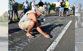 Az úgymond „felnőtt aszfaltrajzoló versenynek” meghirdetett demonstráción olyan „műalkotások” születtek, amelyek gyakorlatilag több nyílt erőszakra való buzdítást is tartalmaztak.