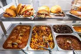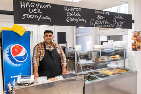 A falatozó kínálata nem éppen vegetáriánusoknak való: a vitrinek mögött hagyományos, ugyanakkor Ásós Géza fantáziáját és ízlését dicsérő ételek sorakoznak. A vendégek láthatóan szívesen legeltetik szemüket a frissen gőzölgő, illatos ételforgatagon. Van itt minden a cigánykáposztától és a hagymás vértől a pacalon, a birkapörköltön és a sült csülkön át a gírosztálig és a csülökburgerig. A tulajdonos olyan tempót diktál, ami méltó az okostelefonról kihangosított ütemes cigányzenéhez. Miközben fejben számol és kiszolgál, rendelést intéz és brüsszeli útjáról nyilatkozik a sajtónak, arra is van gondja, hogy a melegen tartó edények folyamatosan tele legyenek. Mindenkihez van egy-két kedves szava. A törzsvendégeket név szerint ismeri, érdeklődik a családok hogyléte felől, a férfiakkal viccelődik, megdicséri a hölgyek új ruháját és frizuráját. A napi teendőik miatt időnként gondterhelt arccal érkező, jellemzően nem roma vásárlók mosolyogva távoznak. Adnák is a borravalót szívesen, de Ásós Géza inkább lefelé, az egész számok irányába kerekíti az árakat.