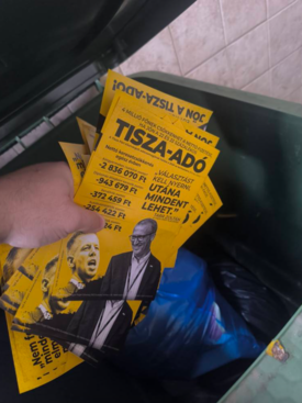 – írta közösségi oldalán Szemző Áron, a Pest Vármegyei Közgyűlés képviselője, a Momentum helyi frakcióvezetője. Az ellenzéki politikus fotóval bizonyította „hősies” tettét, ezzel alátámasztva, hogy a Momentum is a Tisza Párt szekerét tolja, nem akarják, hogy a tájékoztató prospektus eljusson az emberekhez.