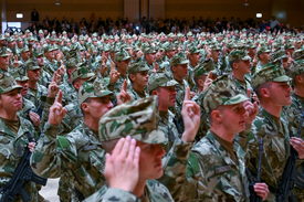 A Magyar Honvédség megújulása, korszerűsítése és megfiatalítása aktív közreműködőinek nevezte a katonákat a honvédelmi miniszter az Embert a vasra! kampány, az egységes alapkiképzési program, valamint az önkéntes katonai szolgálat keretében szeptemberben bevonult állomány ünnepélyes katonai eskütételén pénteken Debrecenben.