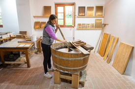 A patakmalom élő műhelyében többek között könyvkötők, restaurátorok és könyvtárak számára, illetve művészi alkotások céljára készítenek vízjeles, minőségi termékeket.