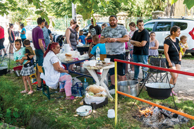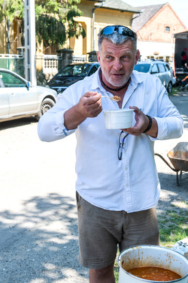 Közben megérkezik a Romani Design, a világ első cigány divatmárkájának háromtagú hölgycsapata. Bemutatót tartanak kollekciójukból, helyi fiatalok öltik magukra a ruhadarabokat és vonulnak bennük a kifutón. Autentikus cigányzene, előadások, finomságok. Az ország számos pontjáról érkeztek vándorárusok, gyertyát, húsneműt, a szokásos vásári portékákat kínálják. A községháza mellett javában zajlik a főzőverseny, cigány specialitások rotyognak az üstökben, hamisítatlan falunapi a hangulat. Egy asztalnál egy helyi szakács saját készítésű vargabélest árul, kiváló levezetésnek bizonyul a csülkös paszuly után.