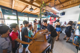 Egy idős asszonyt szólítunk meg, Bencsik Attilához szeretnénk eljutni, aki a meghívót küldte. A hölgy a bolt melletti kávézó irányába mutat: Bencsik úr felesége, Krisztina majd útba igazít minket. A bolt melletti kávézó túlzás nélkül Budapest belvárosában is megállná a helyét. A pult mögött roma fiatalok várják a vendégeket, talán a fesztiválnak köszönhetően a forgalom folyamatosan pörög. Krisztina vidám tekintetű, szőke hölgy, beljebb invitál minket, majd némi bámészkodás után körüljárjuk a fesztiválhelyszínt.