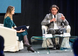 Budapest, 2022. január 17. Deutsch Tamás, a Fidesz-KDNP európai parlamenti (EP-) delegációvezetõje és Déri Stefi mûsorvezetõ a Századvég Közéleti Tudásközpont Alapítvány A válságok kora – Az Európa Projekt kutatás eredményei 2021-ben címû konferenciáján a Várkert Bazárban 2022. január 17-én.