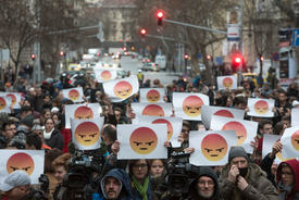 Többen dühös emoji-arcokat ábrázoló táblákat emeltek magasba, és a demonstráción azt skandálták: „nem maradunk csendben, nem hagyjuk”.