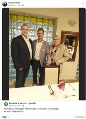 Áttérve a Dél-Alföldre, Magyar Péter együtt fotózkodott László Károllyal, a bajai Bácskaiak a városért Egyesület polgármesterjelöltjével, s Preininger Rozáliával, ki az egyesület képviselőjelöltje.