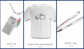 Az Együtt – a Korszakváltók pártja webshopjában minden együtt van, ami egy igazi ellenzéki menetfelszereléshez szükséges: Együtt logós síp kifütyüléshez, s hozzá a kellő nyomaték: egy síp képével ellátott póló Együtt póló kifütyüléshez néven. Ha a síp önmagában esetleg kevés lenne, így azért mégis egyértelműbb, hogy ők éppen nagyon fütyülnek. A tollakról sem feledkeztek meg a mikropártnál, hiszen az mindig jól jöhet, hogy az épp aktuális petíciókat legyen mivel aláírni.