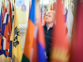 A vén zászlótartó napszint alatti birodalmában a világ összes országa békésen megfér egymással. A dohos szagú, rejtett illatosítókkal meg páraelszívókkal felszerelt kiállítótérben lobogók százai sorakoznak padlón, falon, fűtéscsöveken. Béke van köztük, szinte összeér a tibeti, a kínai meg a tajvani, nem úgy, mint a valóságban, de az azerit, a grúzt meg az örményt is egy kupacban látni: „Itt nincsen háború, nincsen politika” – mondja büszkén a zászlók ura.