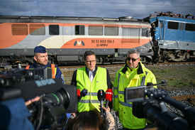 A mozdonyok első tengelyei leugrottak a sínről, a szakemberek ezeket helyezik vissza a vasúti pályára, amely szintén károsodott az ütközésben – mondta el Hadnagy Attila, a MÁV Zrt. pályavasúti területi igazgatóságának vezetője a helyszínen MTI-nek.