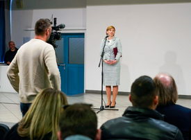 Varga-Bajusz Veronika, a Kulturális és Innovációs Minisztérium felsőoktatásért, szak- és felnőttképzésért, fiatalokért felelős államtitkára a győri Révai Miklós Gimnáziumban tartott sajtótájékoztatón 2025. február 6-án